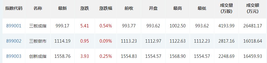 截至6月4日收盘,全国股转公司官网数据显示,三板成指、三板做市、创新成指均实现收涨。