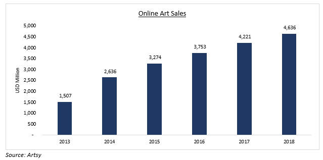 造成这种下降趋势的原因有很多:由于缺乏透明度,尤其是在定价方面,对于未经实物检验的艺术品,对伪造品的恐惧,大量交易不愿意成交。但最重要的是,通过卖家建立信任一直是在线艺术品市场面临的最大问题。尽管艺术行业从线下向线上转型存在一些瓶颈,但专家及其研究仍在对在线艺术市场的未来给予积极的评价,并希望通过合并几个信任的名字来主导这一领域。