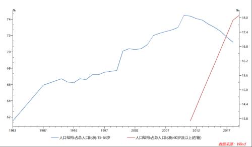 图表1:中国老龄化正在加剧,影响经济增长三大要素之一的人口红利