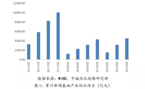 2019年基础设施投资较2018年有所回升,但增长仍然缓慢,最高的9月也仅为4.50%。在疫情发生之前,国务院采取允许将专项债券作为符合条件的重大项目资本金等方式拓宽基建项目资金来源,并将水利建设将作为2020年的重点工作加大投入,以提升基建投资的增速。疫情发生后,对经济增长影响较大的消费行业受到严重冲击,若情况进一步恶化,不排除政府部门增加基建投资力度对冲下行风险,领域仍将集中在补短板的公路、铁路、城建、物流、生态环保、社会民生,以及5G等。这将给信托公司参与新型基础设施建设提供机遇。
