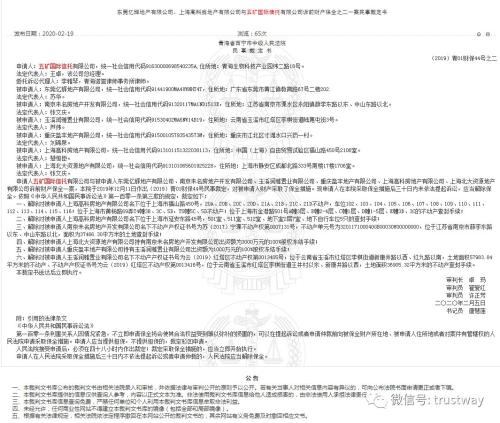 直至2019年2月5日,西宁中院宣布,从本院2019年12月11日依照《中华人民共和国民事诉讼法》第一百零一条第三款的规定,对申请人五矿信托与上述被申请人东莞亿辉地产有限公司、南京未名房地产开发有限公司等6家公司诉前财产保全一案,做出民事裁定,并对被申请人财产采取后保全措施后,五矿信托30日内未依法提起诉讼,依法应当解除对上述被申请人财产保全。