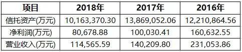 从已公布的财报看,2016-2018年公司营业收入分别为23.11亿元、14.02亿元、11.46亿元。2016-2018年公司净利润分别为16.06亿元、10亿元、8.07亿元。公司业绩三年连续下降。从银行间市场披露的未经审计的2019年财务数据看,2019年净利润不足1亿元的信托公司有5家,华信信托也名列其中,2019年净利润5450.3万,相比2018年净利润80,678.88万,同比更是下跌了93.24%。