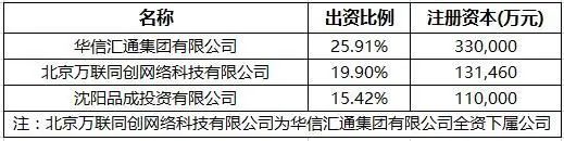 截止至2018年12月31日,华信信托股东总数20家,持有10%以上股份的股东包括华信汇通集团有限公司、北京万联同创网络科技有限公司、沈阳品成投资有限公司,出资比例分别为25.91%、19.9%和15.42%。其中北京万联同创网络科技有限公司为华信汇通集团有限公司全资下属公司,实控人为华信汇通集团。