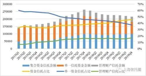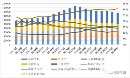 从2019年2季度开始,集合资金信托占比就已经超过单一资金信托,成为最主要的资金来源。