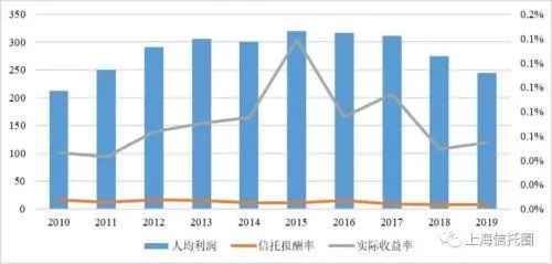 2019年,信托行业人均利润为244.23万元,略低于2018年的275.02万元。