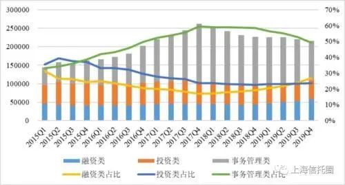 整体来看融资类信托占比有所上升,事务管理类信托占比显著下降,投资类信托则基本稳定。