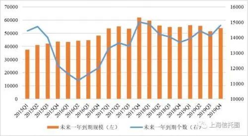 另外,从未来一年信托到期情况看,2019年4季度末,未来一年的信托到期规模为5.40万亿,与2018年末基本持平;从到期项目数量来看,2019年4季度末预计未来一年到期项目为1.48万个,比2018年末增加800个左右,数量大体相当。从规模和数量上来看,都处于较高水平。《发展评析》预计,未来一年的到期兑付压力仍然较大,部分信托项目按期正常清算面临不小挑战。