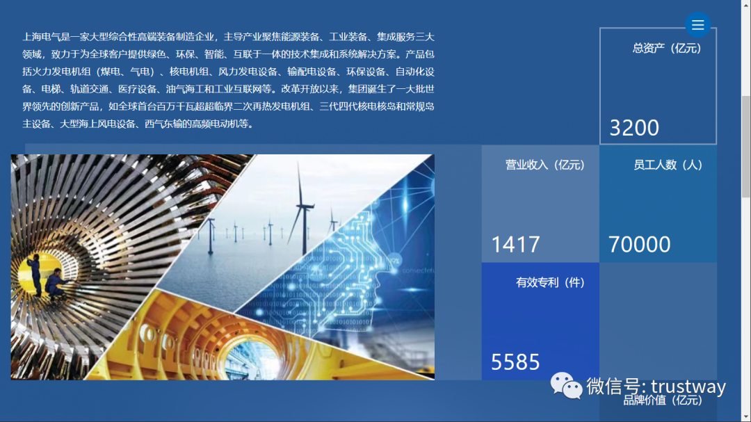 目前,上海电气集团总资产3200亿元,营业收入1417亿元,员工人数70000人。