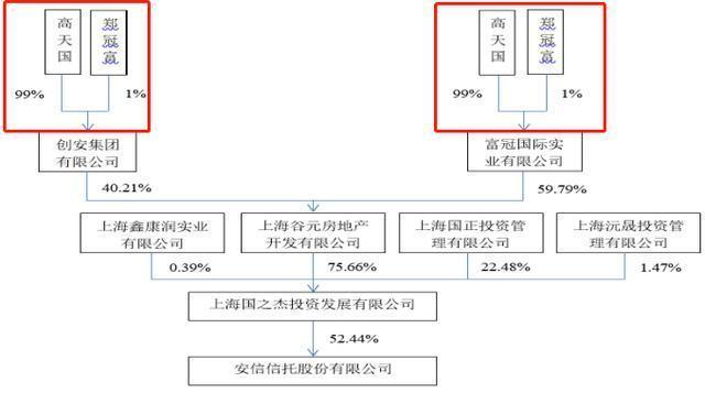 2001年高天国以1.72亿获得了鞍山信托20%股权,成为第一大股东,并将鞍山信托注册地址由鞍山市迁至上海,更名为安信信托。