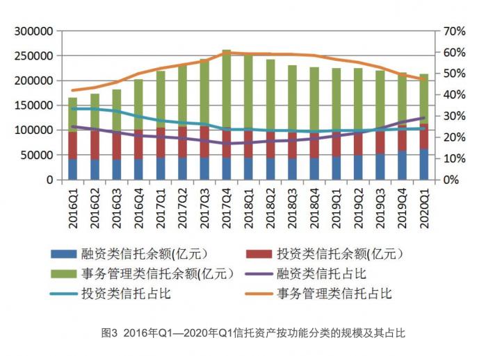 据信托业协会数据,截至2020年一季度末,信托行业融资类信托余额为6.18万亿元,占比28.97%,规模与占比均为近年来新高。
