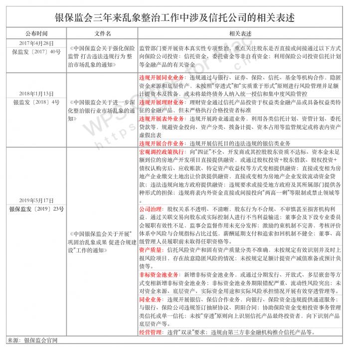 原标题:银保监会公布2020年对信托的七大整治重点 涉及融资类、伪创新类业务