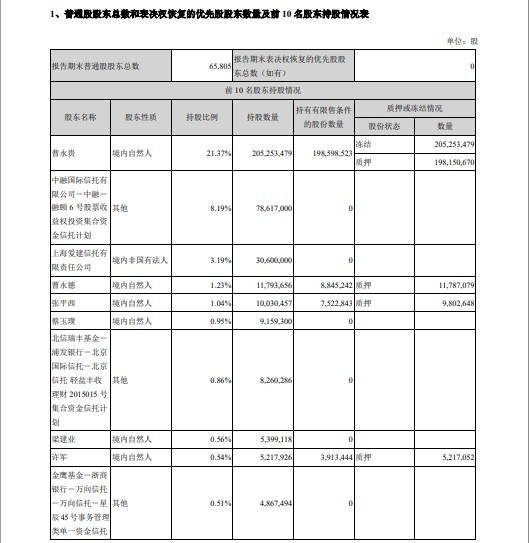 据了解,曹永贵此前曾进行股票质押,后违反约定条款。2020年2月13日,曹永贵所持有7861.7万股金贵银业股票在淘宝网公开拍卖,中融信托以最高应价竞得拍卖标的股票。2020年2月18日,曹永贵所持有的3060万股(占公司总股本的3.19%)金贵银业股票又通过司法裁定划转至爱建信托。随后两家公司分别于2020年3月13日、2020年2月28日对股票进行解禁。