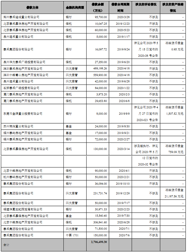注意!泰禾集团上述所表述的已到期未兑付的270.65亿元逾期债务,明细如下: