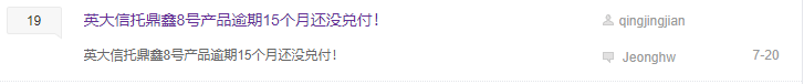 同样,在英大信托官网,几天前,7月17日英大信托在官网公布有关蓝天043号集合信托计划延期结果公告。公开资料显示,蓝天043号信托计划,成立于2017年6月,存续期为24个月,融资额为1.5亿元。该产品与鼎鑫8号一样也属于固定收益产品,预期年收益率分别为6.5%(投资额:100万-300万)及7%(投资额:300万及以上);属于融资贷款类信托产品。