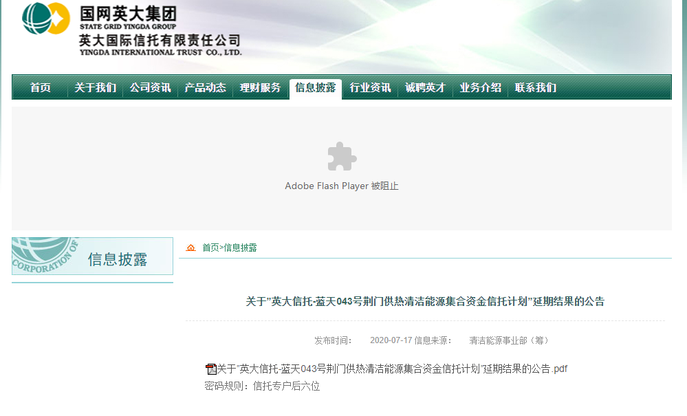 由于蓝天043号集合信托计划延期结果PDF采取加密措施,记者无法直接查阅,就能否提供解密版PDF,以及该计划最新进展,中国网财经也一同采访到英大信托,对方表示:“原收购事项由于受春节后突发疫情的影响出现延误,导致收购资产的评估基准日过期,需重新启动相关收购尽调评估手续。现阶段正由双方指定事务所进行期间审计,待评估完成后将尽快启动收购程序。”同时,英大信托补充道:“目前,该信托计划融资人基于上半年湖北疫情对业务造成客观影响提出展期一年的申请。该项目增信标的——湖北荆门联成热能有限公司现已投产及在建的热力管道均正常运行,融资方能够按时支付投资者收益。”
