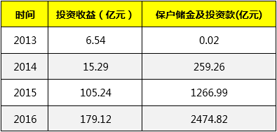 数据显示,2013-2016年,天安财险的保户储金及投资款从最开始的不足亿元升至2016年的2474.82亿元。