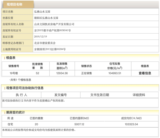 事实上,凯亚地产并没有获得全部预售许可证。根据北京住建委官网显示,只有19号楼的52套是拿到预售许可证的,其他的楼都没有拿到。