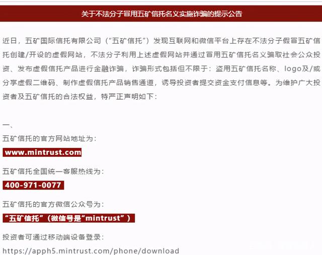 其他如安信信托、中航信托、五矿信托等多家信托公司发布声明称,有不法分子冒用公司名义进行金融诈骗,提醒广大投资者提高警惕。所以你看,这不是什么新鲜事。