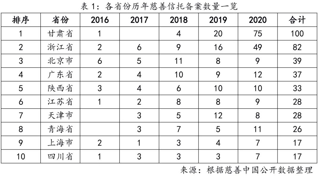 (二)新增慈善信托迅速向甘肃、浙江两地集中