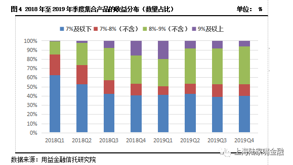 根据用益金融信托研究院统计,2019年集合信托产品的平均预期收益率为8.12%。虽然随着刚性兑付被打破以及净值化管理的推进,信托等固收类产品的预期收益率面临下行风险,但也并未影响信托的收益率仍然高于传统的银行理财产品。