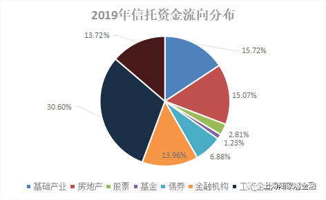 根据中国信托业协会统计,2019年信托的资金流向主要是工商企业、金融机构、基础产业、房地产等,尤其是工商企业占据了30.6%。