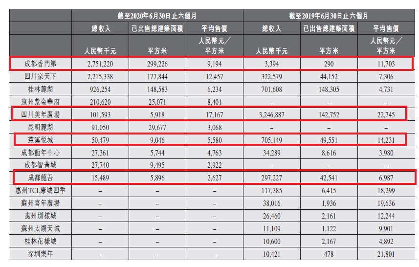 今年上半年,花样年销售收入靠前的楼盘项目中,平均售价相较去年同期时大多有所下降,这无疑将影响公司单个项目的利润水平。