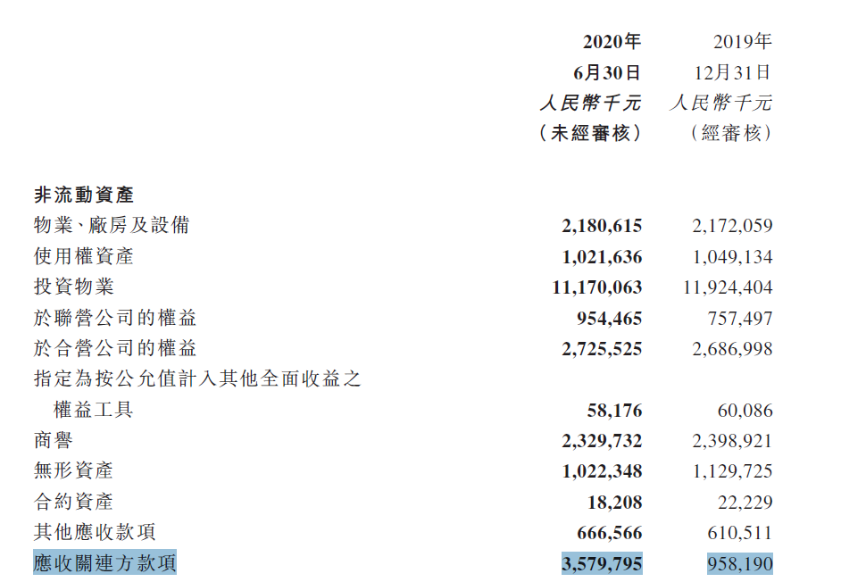 与此同时,花样年对关联方的应收款项也同样有较大幅度的增长,从去年末的9.58亿元增至了35.8亿元。