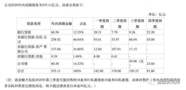 2020年7月8日,泰禾集团在对深交所《年报问询函》的回复公告中披露了2020年内到期债务的债务类型。