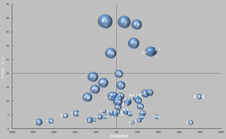 图1.2020年信托公司净资产、净利润与净利润增速分布