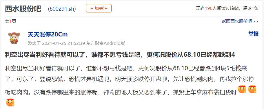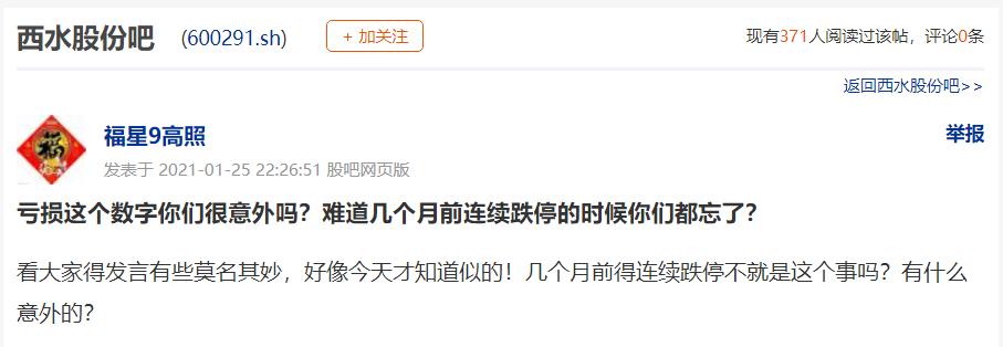 2020年三季报数据显示,西水股份股东户数超11万。在西水股份发布公告后,股吧里亦是“热闹非凡”。