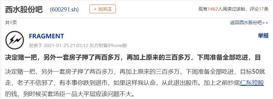 更有疯狂的网友表示,“决定赌一把,另外一套房子押了两百多万,再加上原来的三百多万,下周准备全部吃进!”
