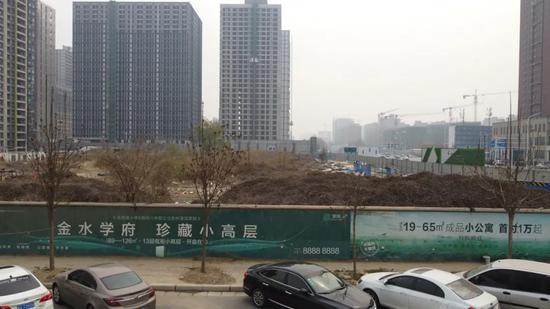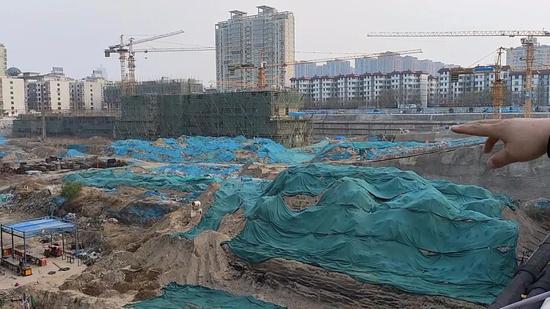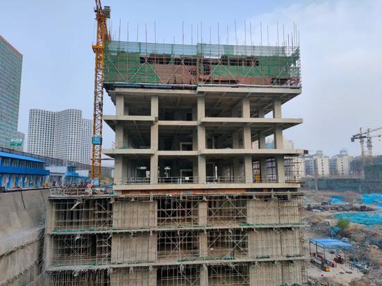 目前,整个施工现场仅建成了一栋十几层楼的框架,其他部分都是裸露的地面,分散地堆着一些建筑材料。