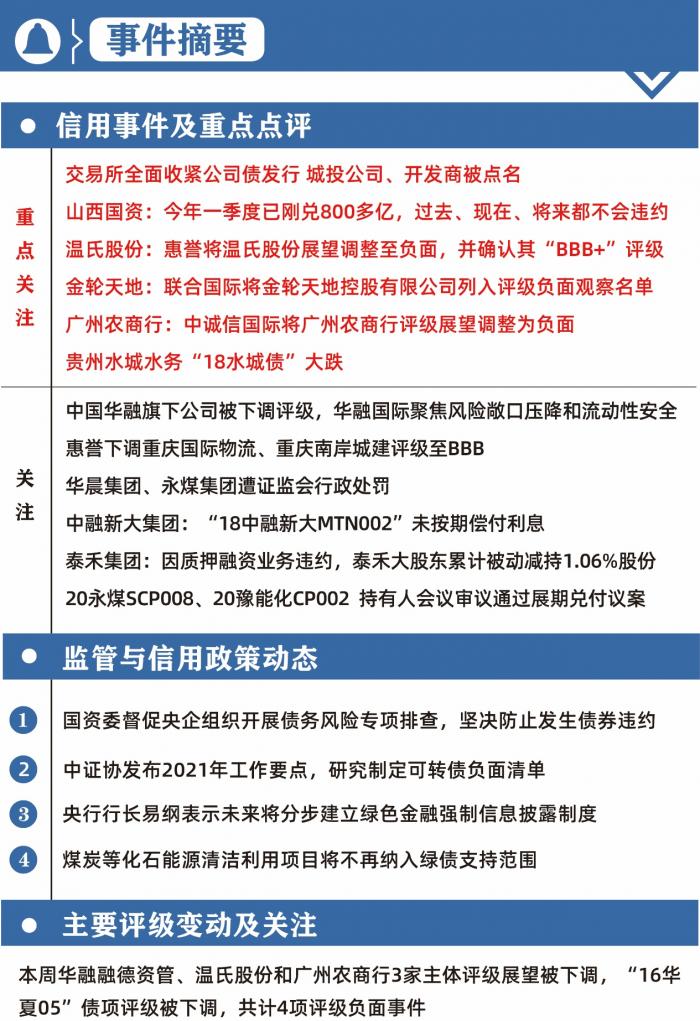 原标题:21信用预警周报丨交易所全面收紧公司债发行,山西国资今年1-4月已刚兑800多亿
