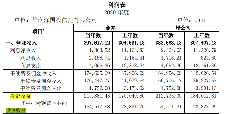 以华润深国投信托为例,年报相关数据显示,2020年其投资收益为21.59亿元,在各家信托公司中处于领先位置。