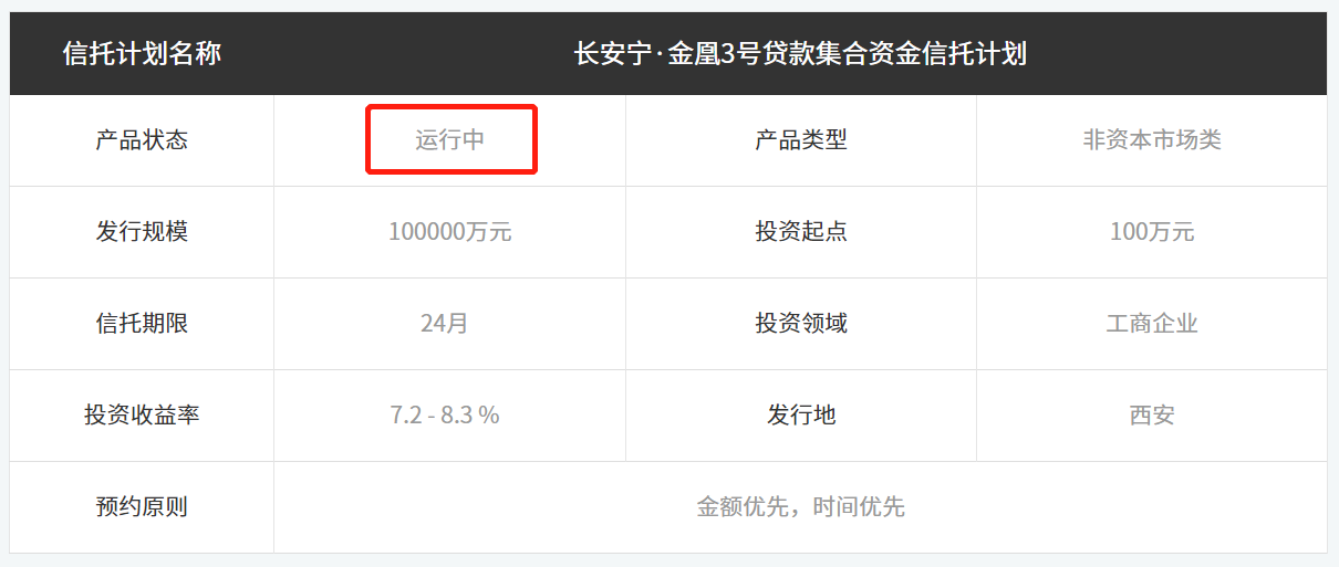 据悉,在2020年中爆出假黄金案之际,长安信托依然选择了进行兑付,成为继民生信托、东莞信托之后,第三家选择兑付的信托公司。有关于兑付的具体情况,长安信托对外表示与金凰珠宝合作的信托项目计划全部投资者已顺利兑付。但官网产品一栏却显示,此前因兑付延期的“长安宁·金凰3号”仍处于运行状态。