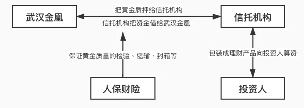作为国内首家进军纳斯达克的黄金企业,武汉金凰珠宝股份有限公司最早从2013年起便尝试以1000公斤的黄金做质押从信托公司贷出2亿融资款用于旗下房地产项目“武汉珠宝园”的开发,年利率13.5%。