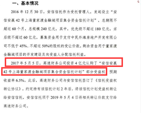 这起信托纠纷,源起湖南高速认购了安信信托金额为4亿元的信托产品,安信信托承诺“兜底”,结果违约了。