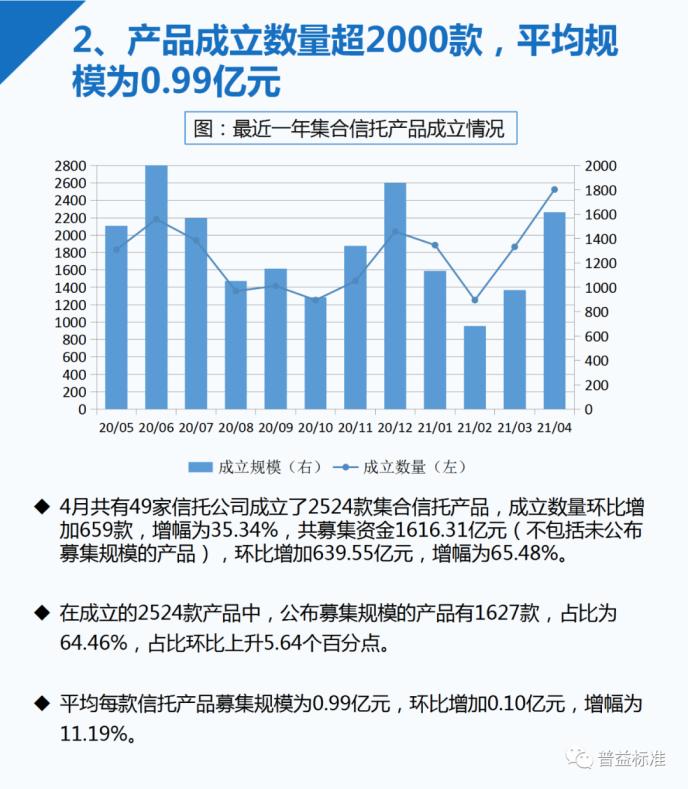 原标题:4月信托产品成立数量大幅增加 平均募集规模为0.99亿元 来源:普益标准LTh财经新闻网