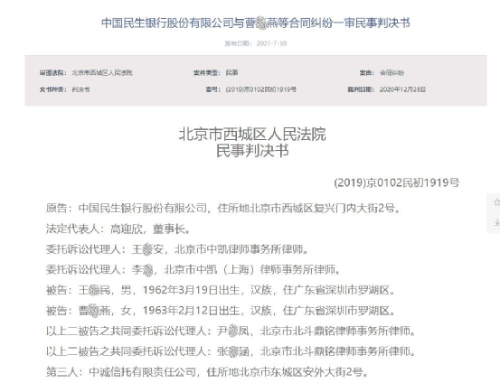 最终,法院驳回了民生银行的诉讼请求。王某民夫妇胜诉。