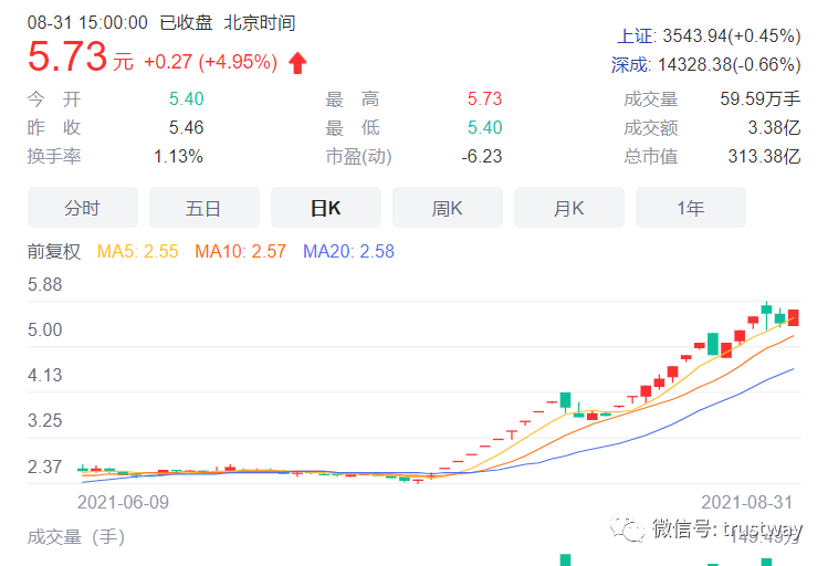 8月31日,ST安信再度涨停,14个交易日内录得10个涨停,累计涨幅为55.71%,累计换手率为20.45%。最新A股总市值达313.38亿元,A股流通市值301.64亿元。