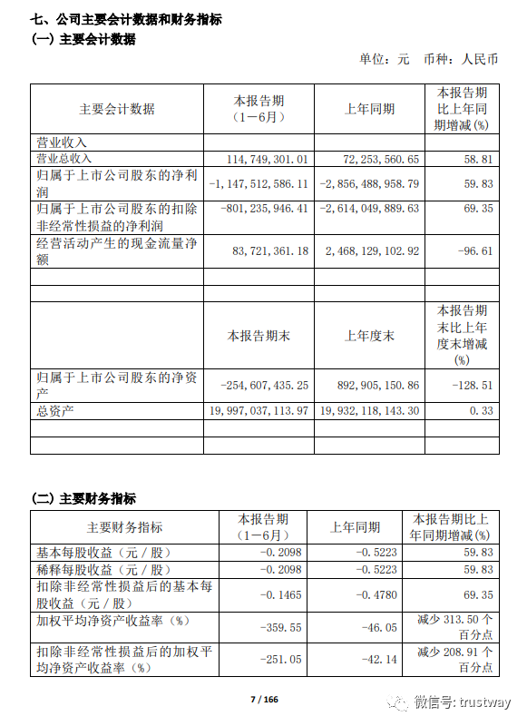 8月31日安信信托发布的半年报数据显示,上半年公司共实现营业总收入1.15亿元,同比增长58.82%,实现净利润-11.48亿元,同比增长59.83%。