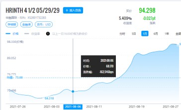 事实上,在巨额预亏公告出炉至8月30日,遍览中国华融的所有债券产品,均无一只债券出现大幅波动,大多数维持在90美元以上。甚至8月26日,华融一只2047年到期、票息5.5%的债券产品,更有6.981%的涨幅,领涨于整个美元债市场。