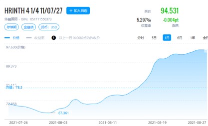 由于中国华融仍在停牌之中,故此二级市场无法反响。但是,在二级市场的另一边的债券市场,受与潜在投资者签订协议框架刺激,中国华融旗下几乎所有的美元债产品均飙升:中国华融2025年到期、票息5%的债券每1美元买价上涨8.1美分,至94.5美分,势创4月末以来最大涨幅;票息4.5%的永续债券每1美元买价上涨6美分至96.6美分。