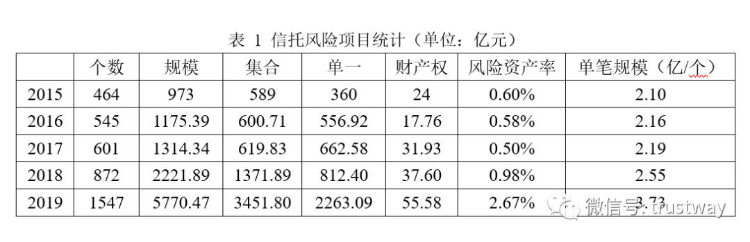 2018年起,信托风险项目规模快速上升。至2019年,信托风险资产率更是达到了2.67%,远高于同期银行业不良贷款率1.86%,也大于现有银行业贷款拨备率2.5%。
