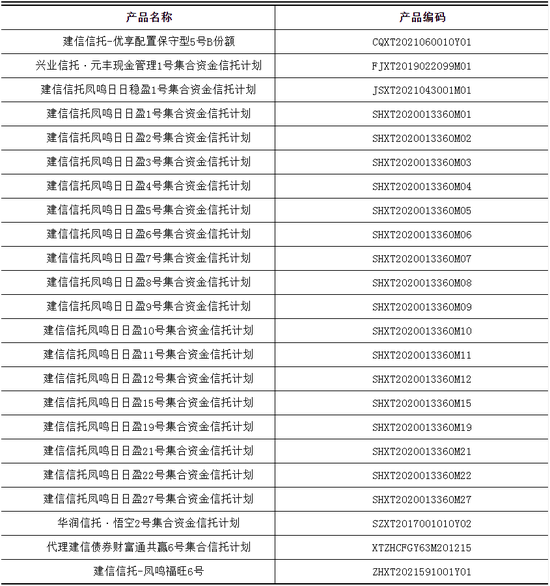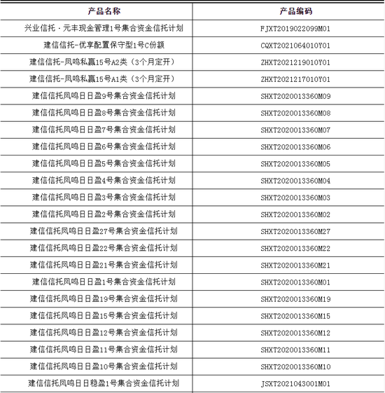 二、2021年10月15日,我行将暂停部分信托产品的赎回交易,具体产品列表如下: