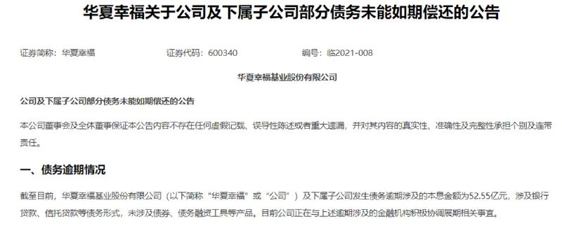 公开资料显示,去年一季度,华夏幸福发布公告官方承认债务逾期问题,中融信托在内的诸多信托公司的相关信托计划因此陆续出现违约。同年10月,华夏幸福与金融机构债权人委员会举行全体债权人大会,并于会后公布最新化解债务方案。公告信息显示,华夏幸福将通过卖出优质资产回笼资金、出售资产带走债务、现金清偿、债务展期等方式分批实现债务化解。