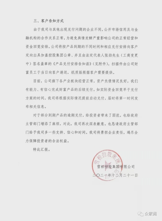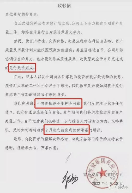 大过年的也不消停,雪松控股正式暴雷,1月30日发了一封致歉信,告诉投资者,兑付无法完成。