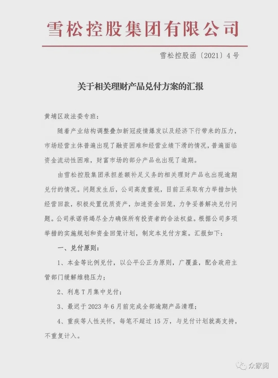 但理财产品自2021年4月起出现逾期至今未获兑付,在此期间有投资者在多次与雪松控股寻求协商无果的情况下,几个月来通过向信访部门、金融管理部门递交举报信,向经侦部门报案、向法院提起诉讼等多渠道进行维权,但非常遗憾的是至今都未能获得实质性进展。