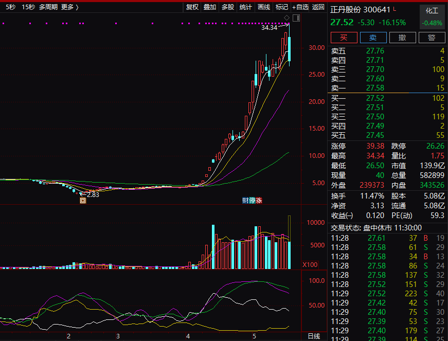 今年来的10倍大牛股,正丹股份盘中大涨近5%后,突发跳水一度跌超19%,逼近20%跌停。而改革预期升温的电力板块,掀起涨停潮。